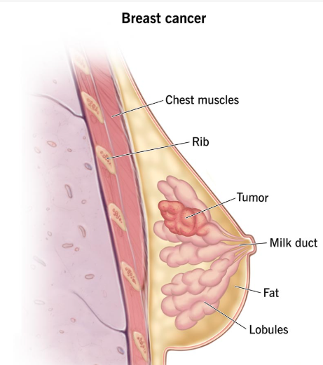 The most common. Starts in the milk ducts. Spreads into the surrounding breast tissue. Easy to detect. Often found during a routine check.
